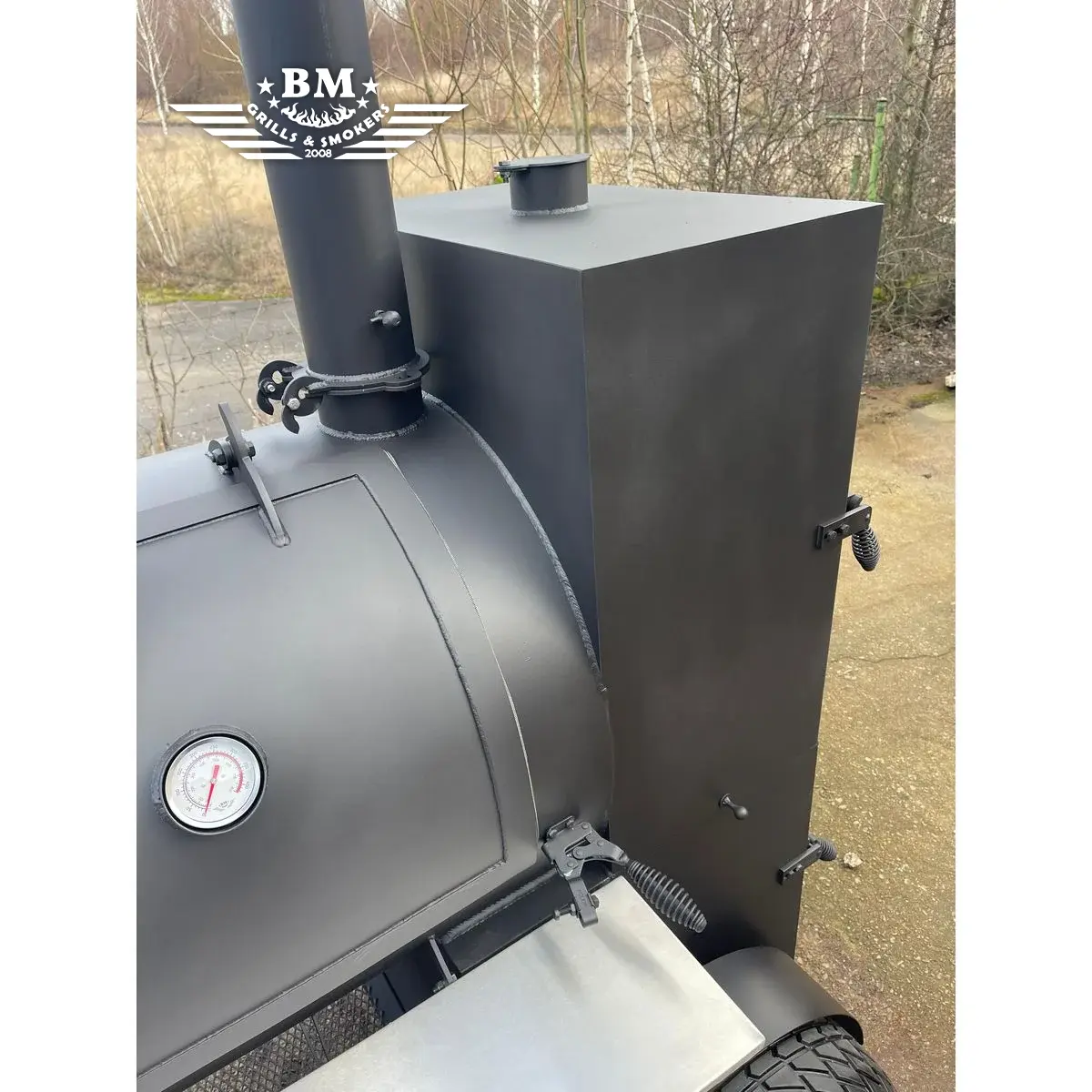The BMS-5 PLUS Dual chamber offset smoker XL smoker expands your BBQ possibilities – the smoke enters the chamber indirectly, so the end result is always moist, soft and with a rich smoky aroma.