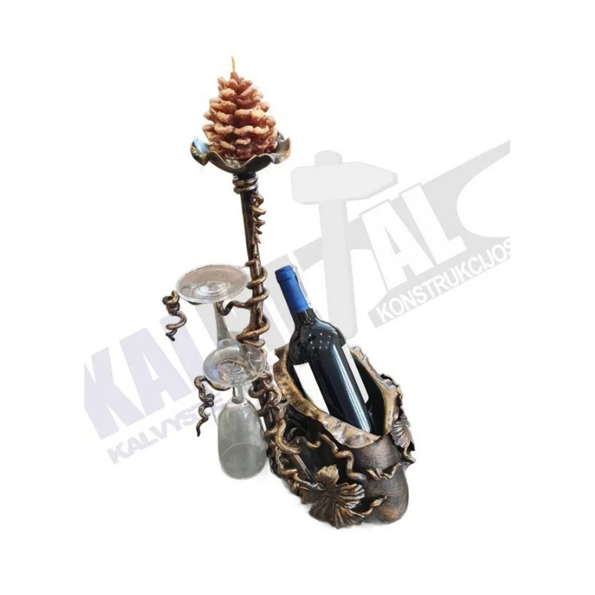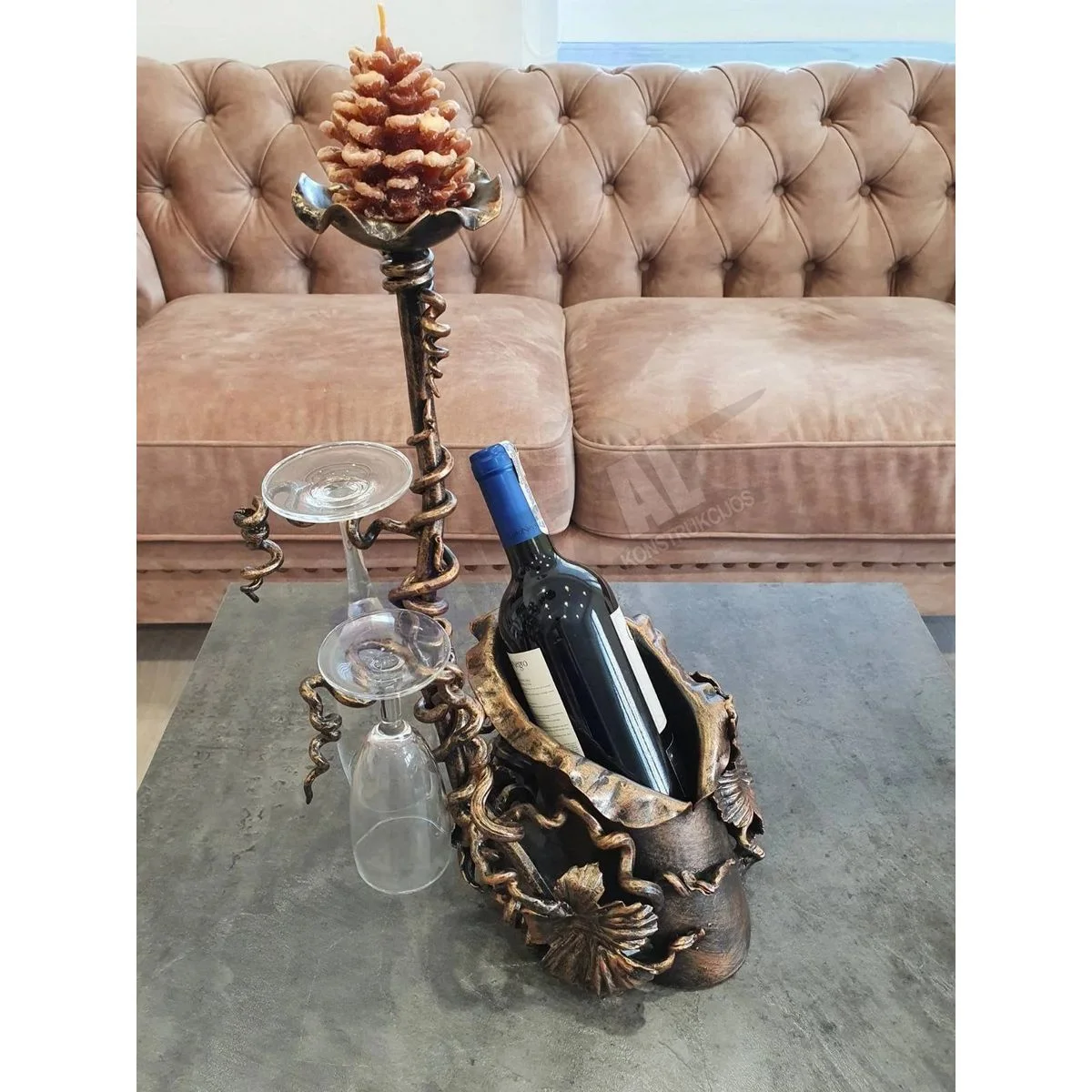 Wrought-iron decorative bottle and glass holder – candlestick – a high-quality product.