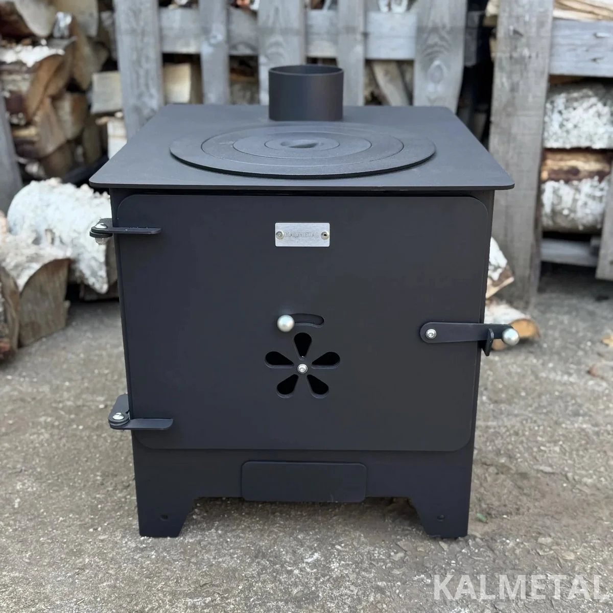 This compact stove-fireplace is a perfect fit for your modular cabin, garage, forest hut, terrace, or outdoor kitchen.