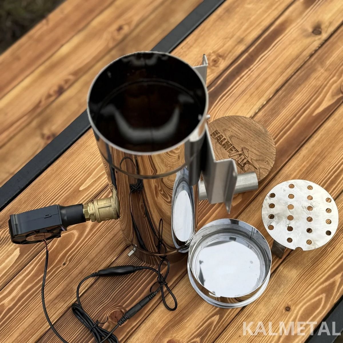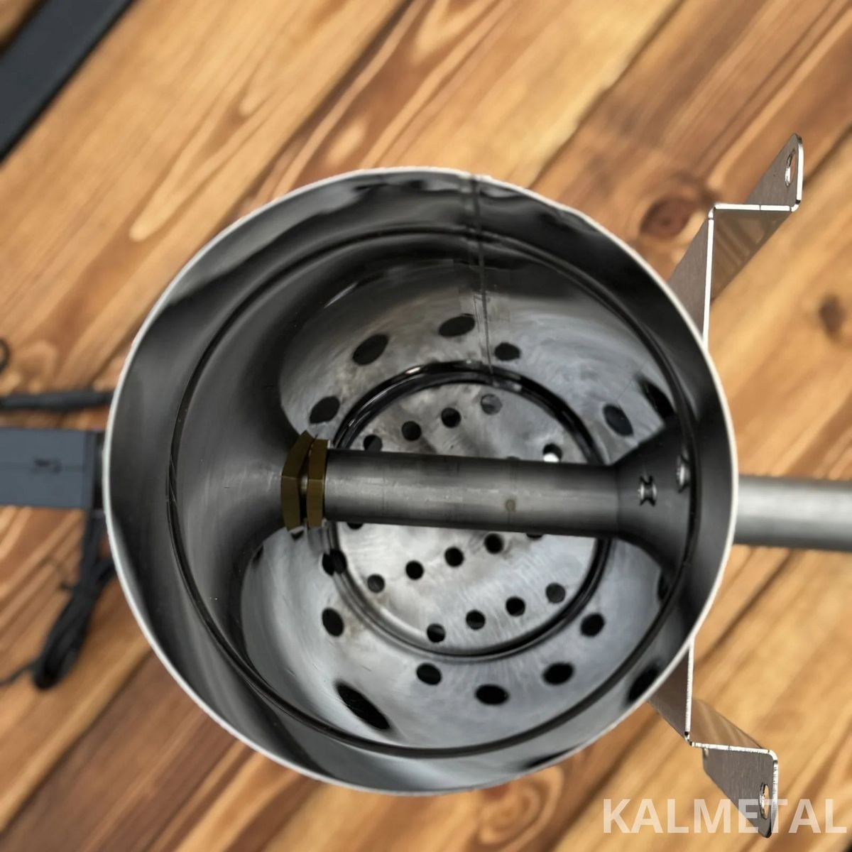- Combustion chamber diameter Ø120 mm, height 40 cm – capacity for wood chips or sawdust 3L