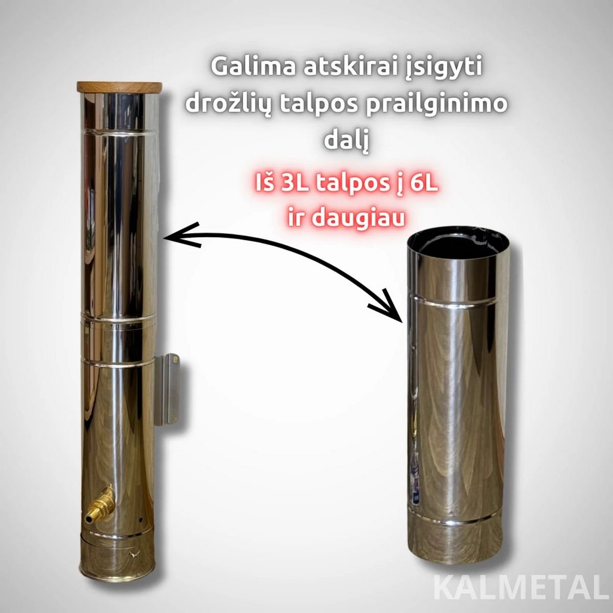 The wood chip or sawdust capacity is 3L. This capacity can be increased with additional pipe sections (3L each). You can add as many sections as you want – click here.