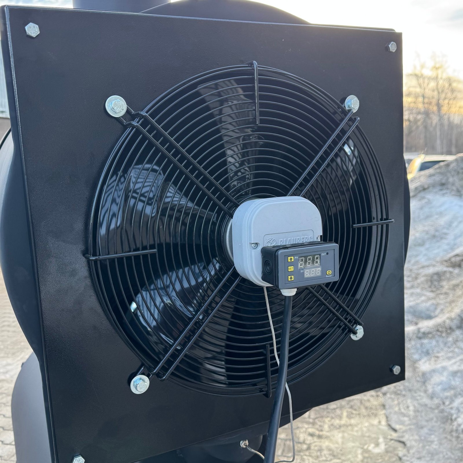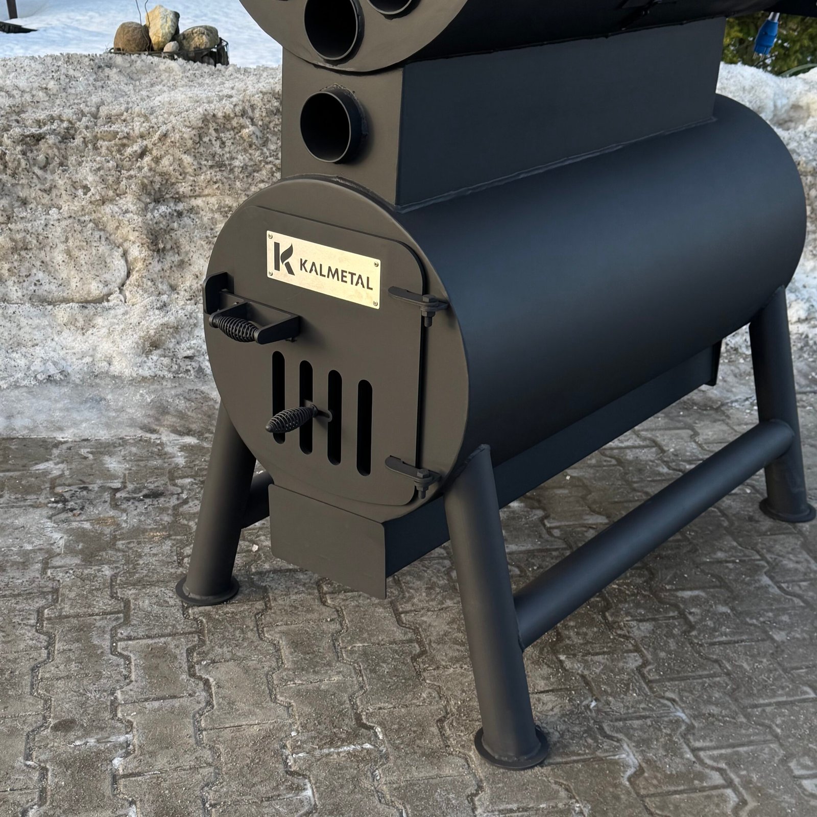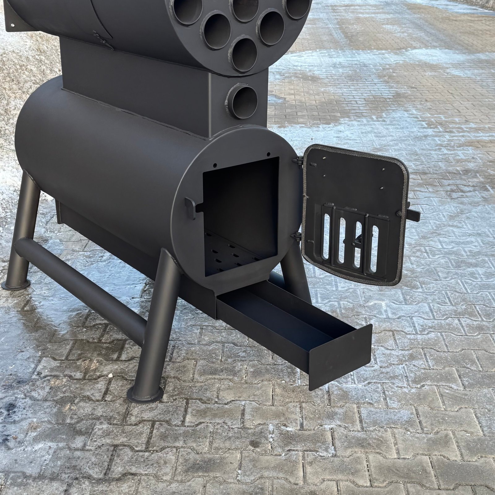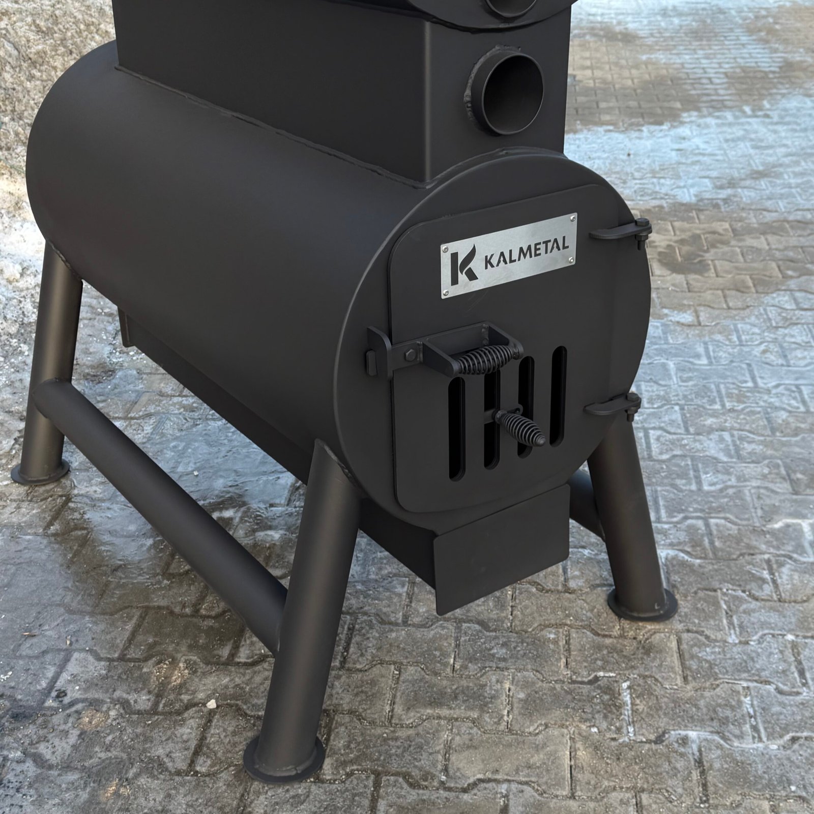 A high-power solid fuel heating stove designed for manufacturing, storage, and industrial facilities.