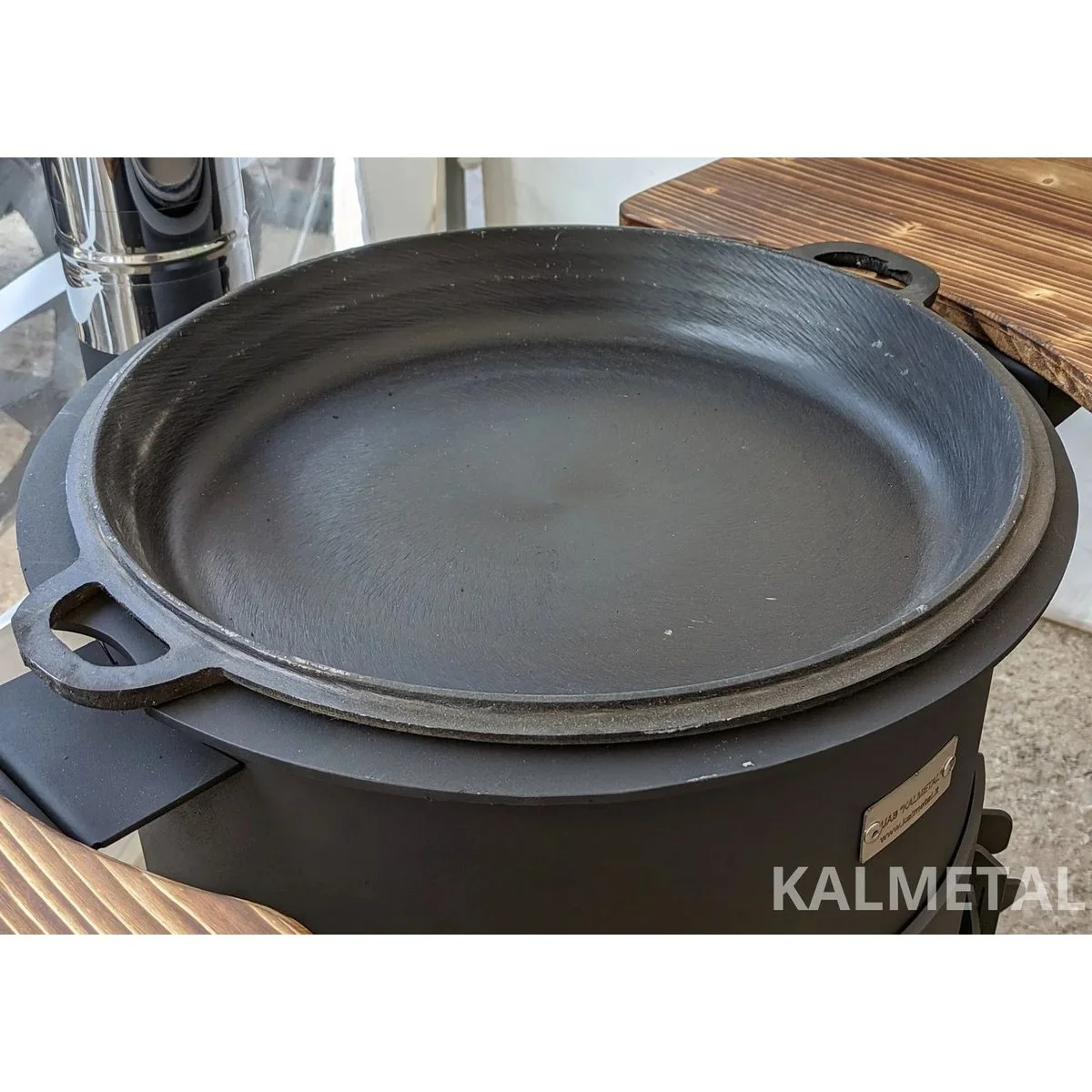 - Ø42cm idealiai tinka ant Ø40cm krosnelės ir 12L puodo – kaip dangtis