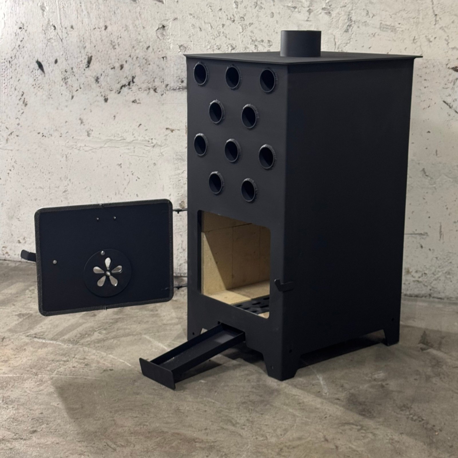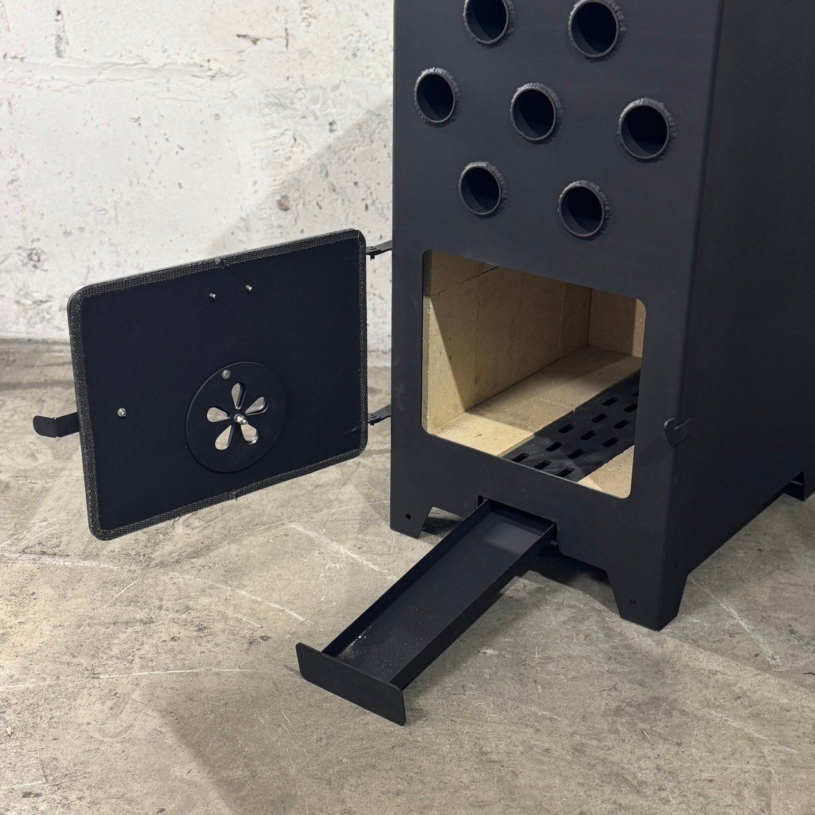 Minimalistinio dizaino ir efektyviai veikianti kieto kuro krosnelė su šamotine pakura – pečiukas – „buržuika“, skirta didesnių patalpų šildymui. PLUS modelis pasižymi padidintu krosnelės aukščiu, papildomais šilumos vamzdžiais bei šamotinėmis plytomis pakuroje, kurios leidžia ilgiau išlaikyti šilumą ir ją tolygiau atiduoti į patalpą.