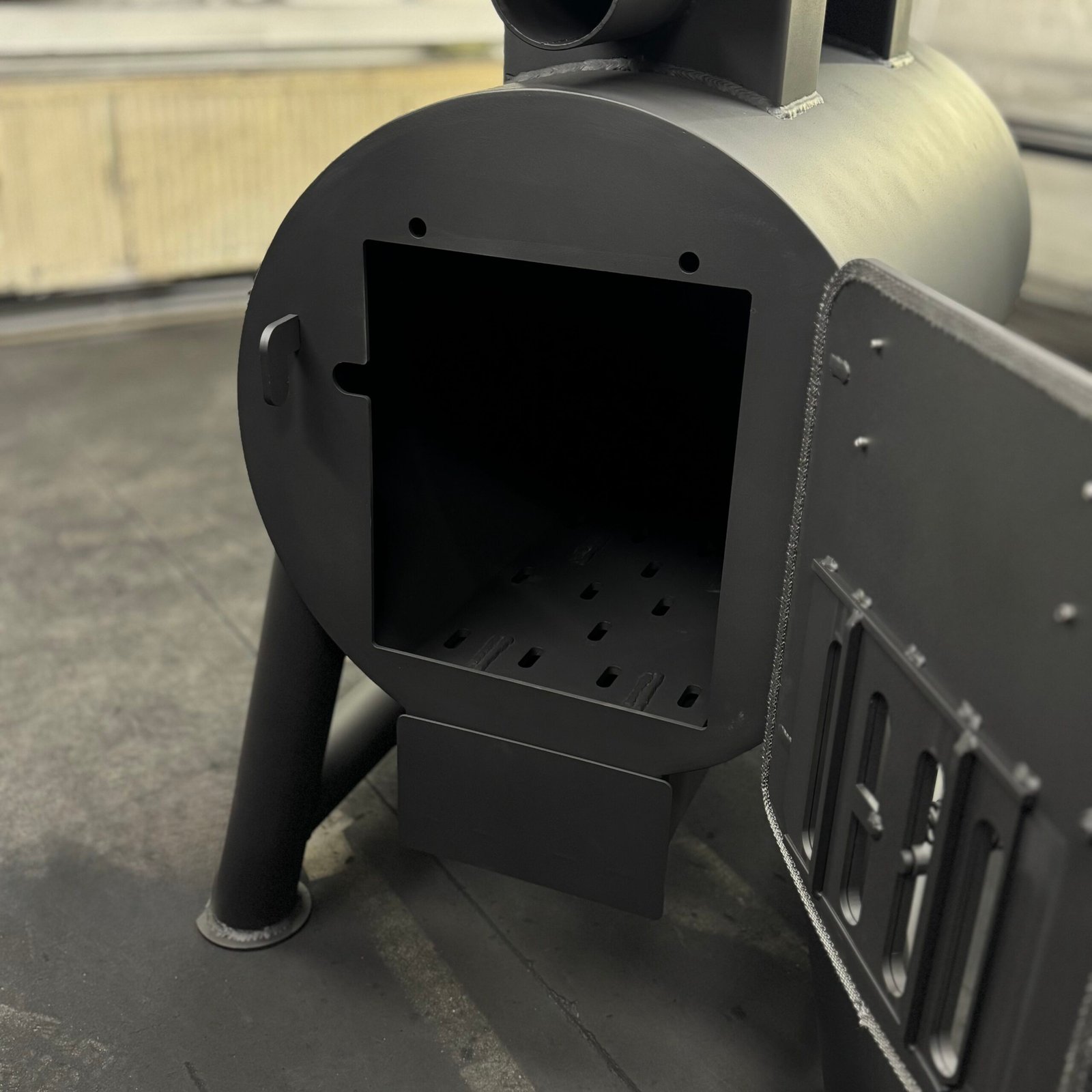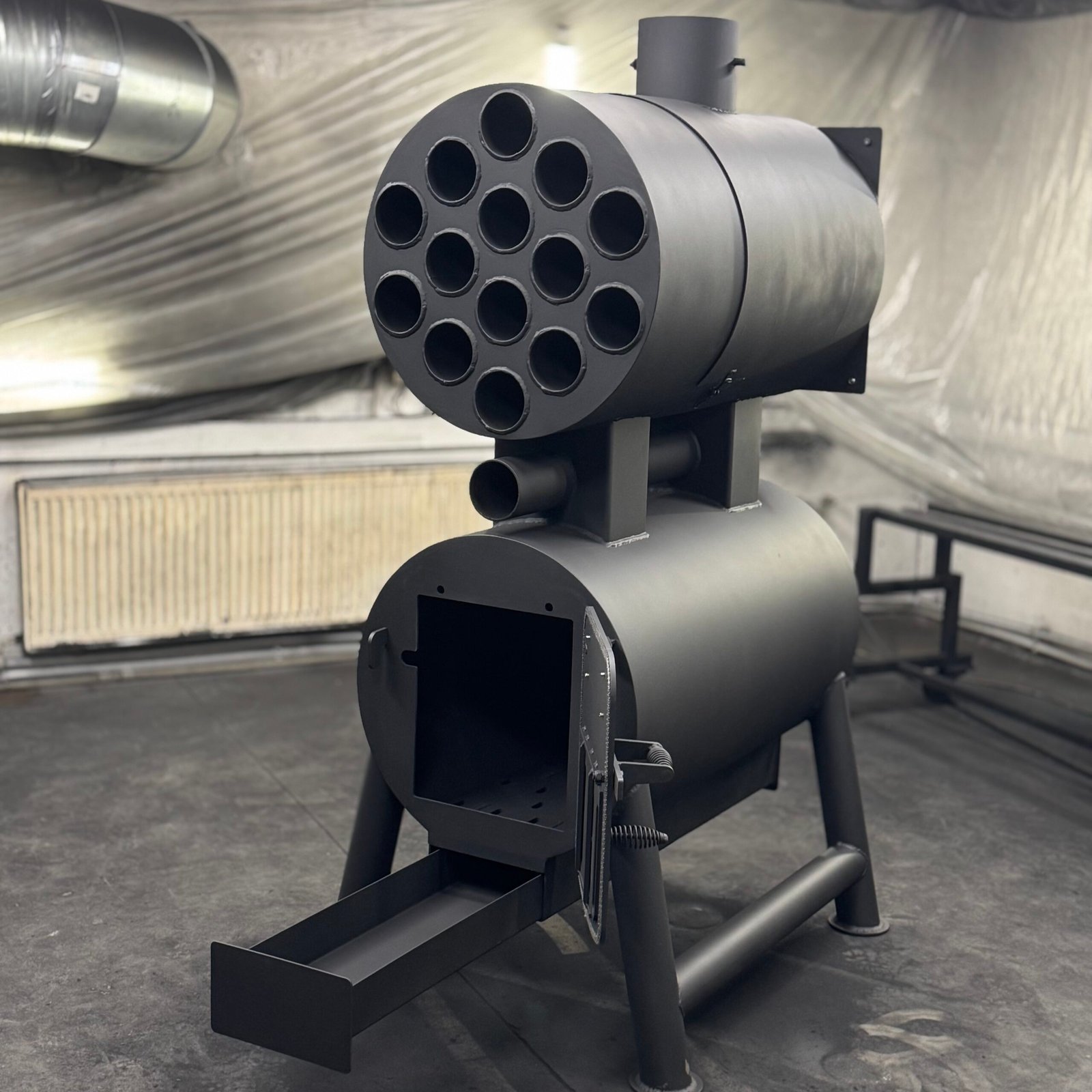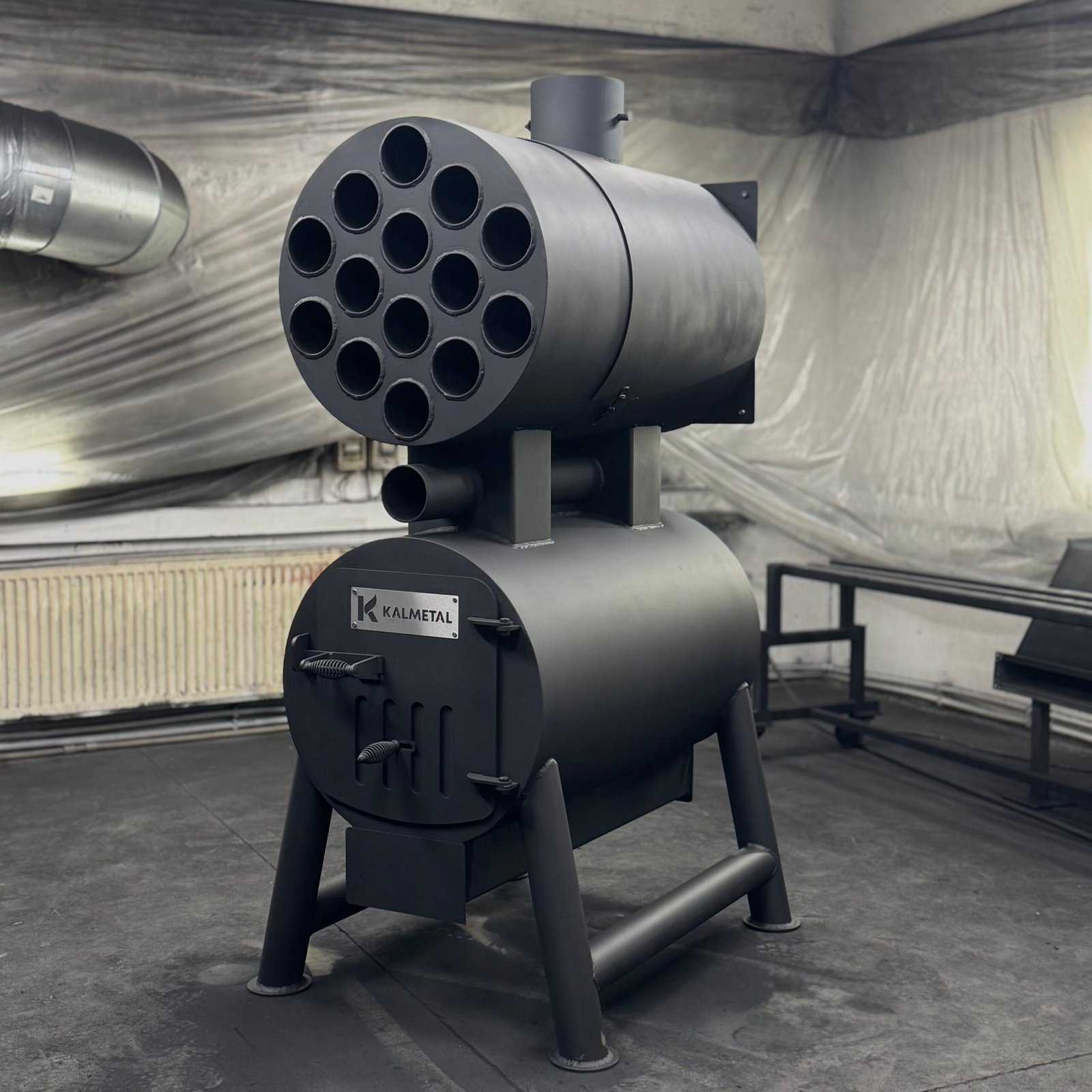 Didelės galios kieto kuro šildymo pečius, skirtas gamybinėms, sandėliavimo ir pramoninėms patalpoms.