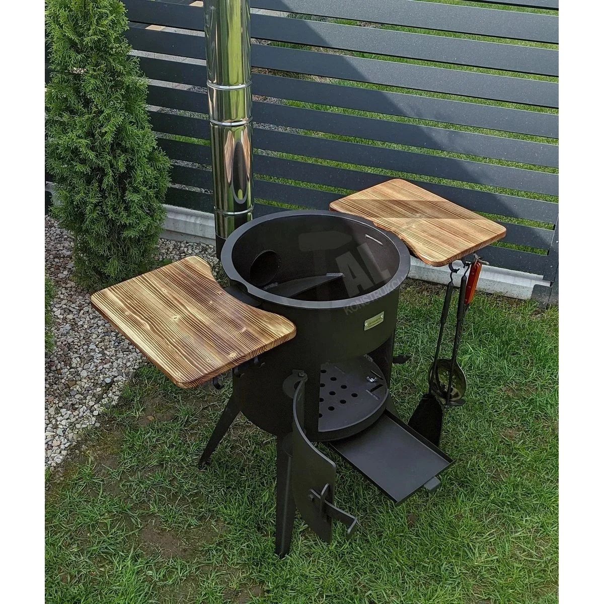 Krosnelė su lentynomis ir kaminu + 12L puodas + leganas + kiaurasamtis + samtis