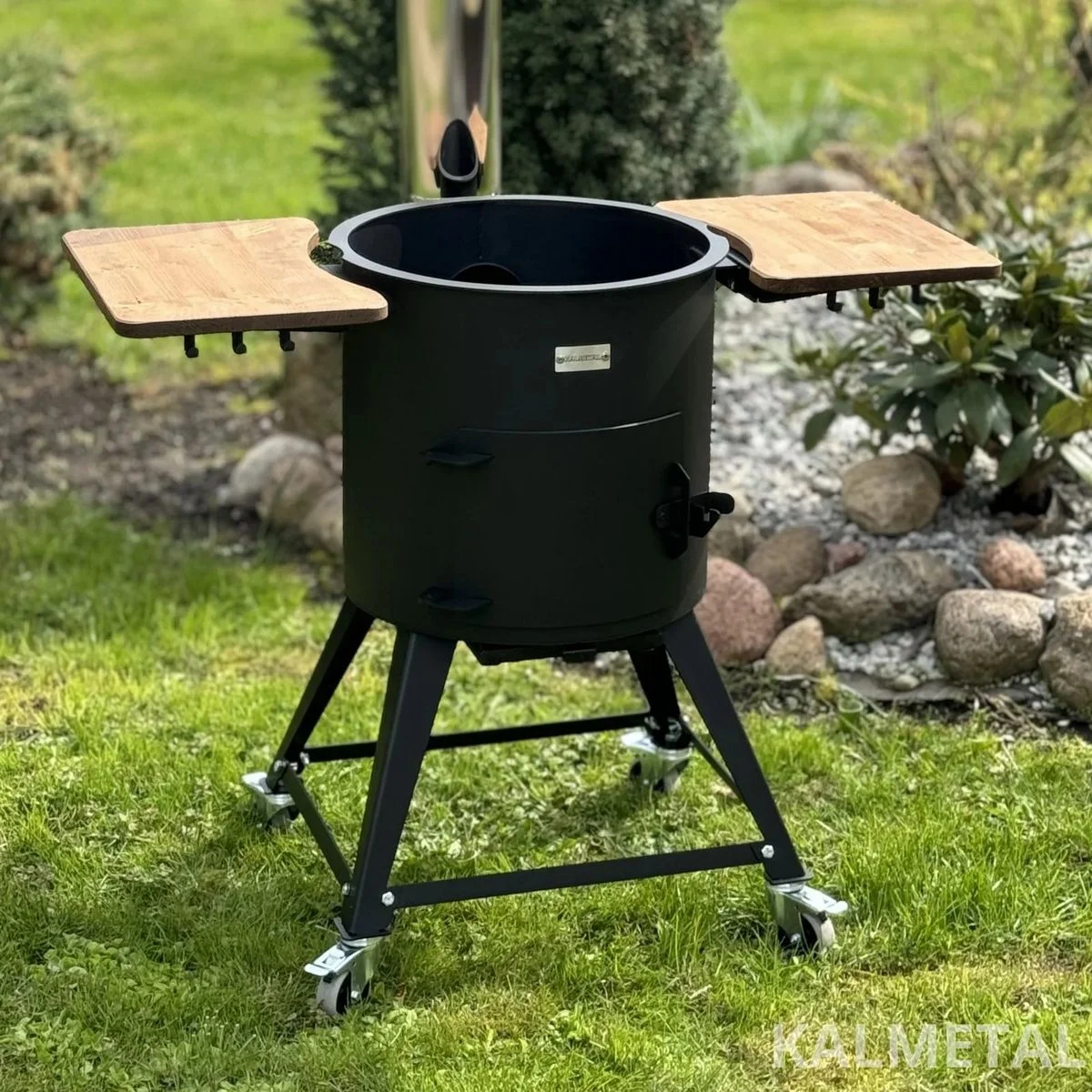 PREMIUM nuo 8L iki 22L 3MM krosnelė su kaminu, su lentynomis, ratukais