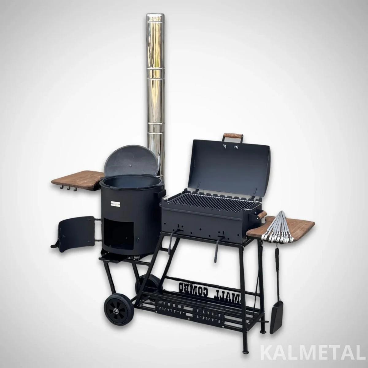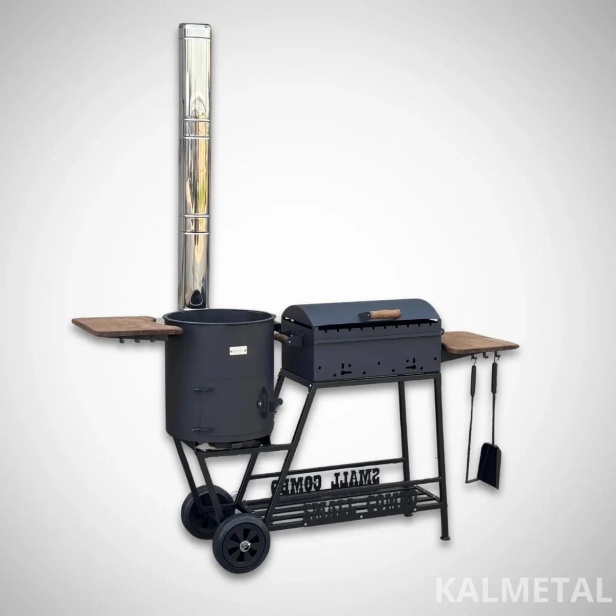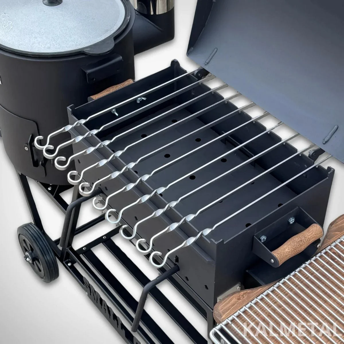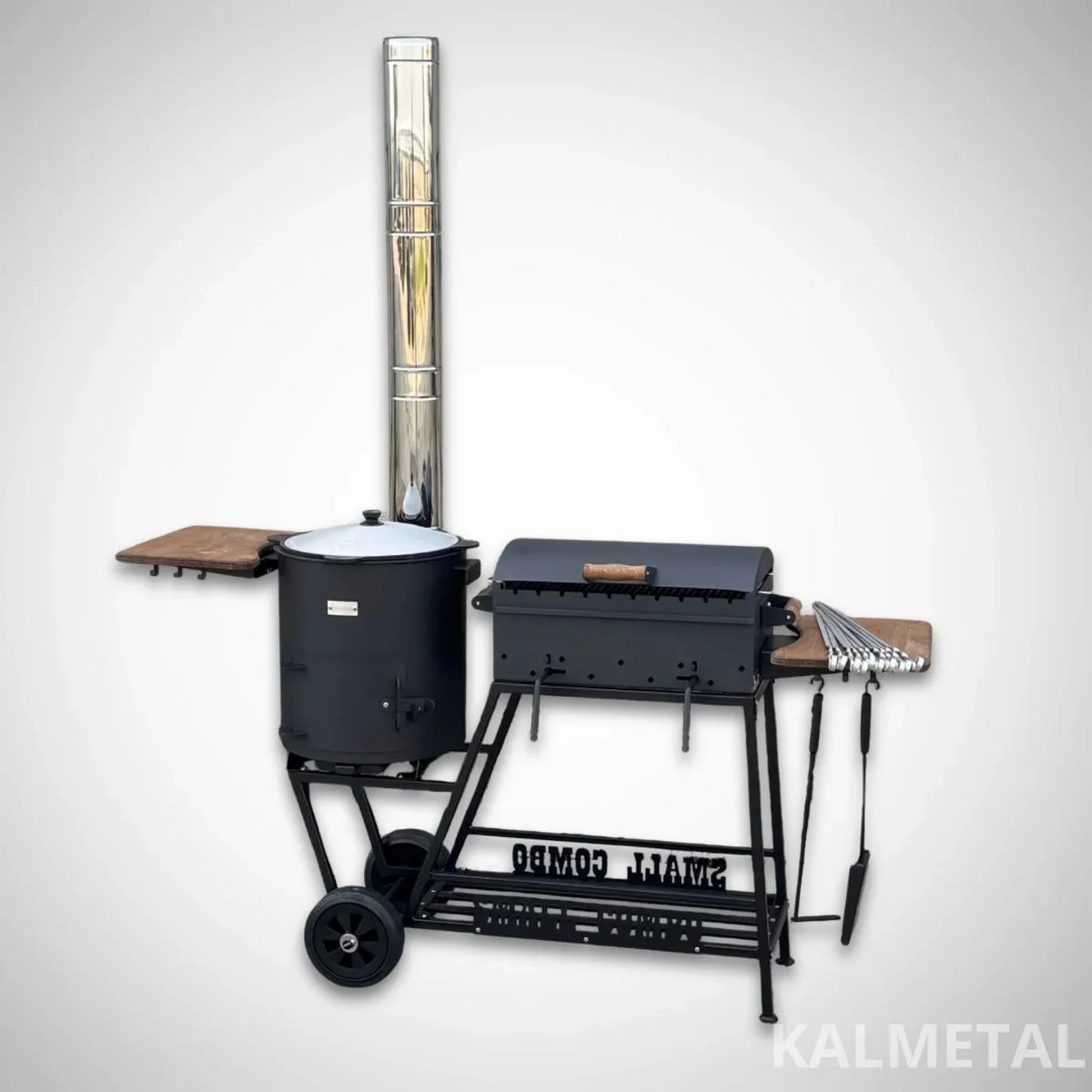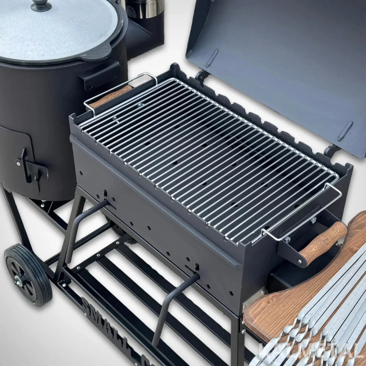 Unikalus ir praktiškas sprendimas – šašlykinė ir kazano krosnelė viename gaminyje. Visa lauko virtuvė ant vežimėlio!